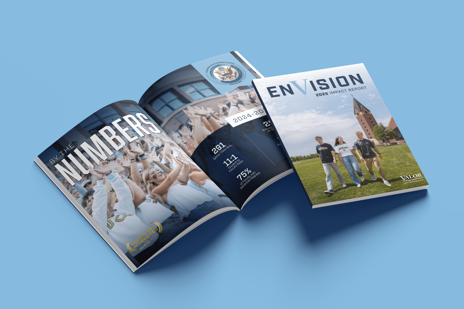 Valor set out to create an annual report that clearly communicated the financial, campus, and alumni impact of the 2024–2025 school year. The goal was to design a publication that presented complex data in a way that felt refined, readable, and visually engaging. The report needed to stand out among peer institutions—both in the clarity of its information and in the quality of its design—showcasing Valor’s excellence through thoughtful typography, layout, and storytelling.